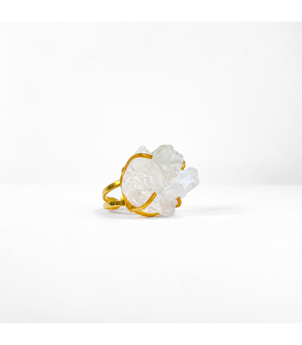 Anillo de engaste doble hecho de cobre enchapado en oro de 18k con piedra de Cuarzo Cristal en forma de luna, regulable entre las tallas 5 (15mm) y 8 (18mm)*